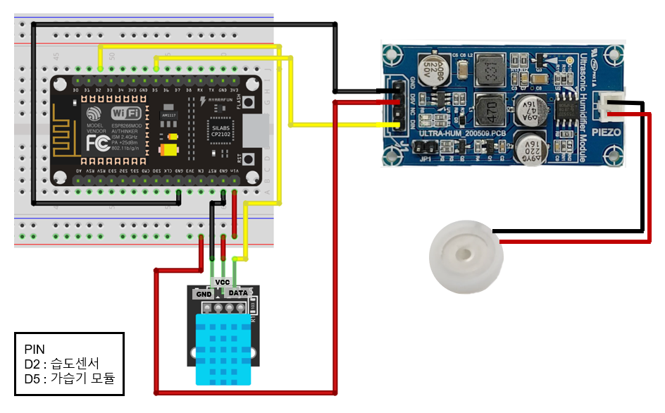 습도센서나 가습기 모듈의 PIN은 사용할 핀번호로 임의로 정해주셔도 됩니다.